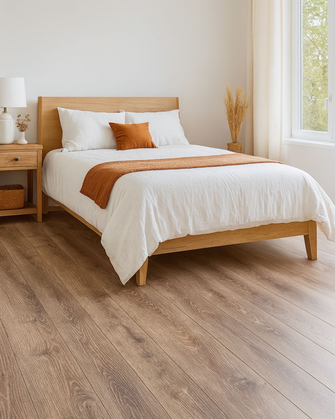 Ovaj laminat donosi autentičan izgled prirodnog drveta uz izraženu teksturu i nijanse toplog hrasta. Idealno se uklapa u enterijere u skandinavskom, rustičnom ili modernom stilu, stvarajući prijatan i topao ambijent u spavaćoj sobi. Njegova prirodna boja i izraženi godovi daju prostoru dubinu i eleganciju, dok površinska otpornost osigurava dugotrajnost i lako održavanje.